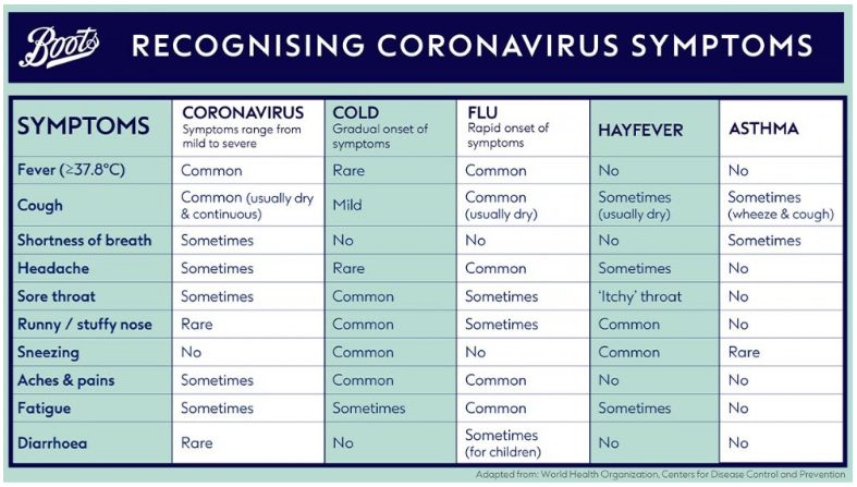 Irish Pharmacy Union Knowing The Symptoms Of Covid19 Will Help You Get The Treatment If You Need It Learn How To Tell The Difference Between Coronavirus Flu And The Commoncold Facebook