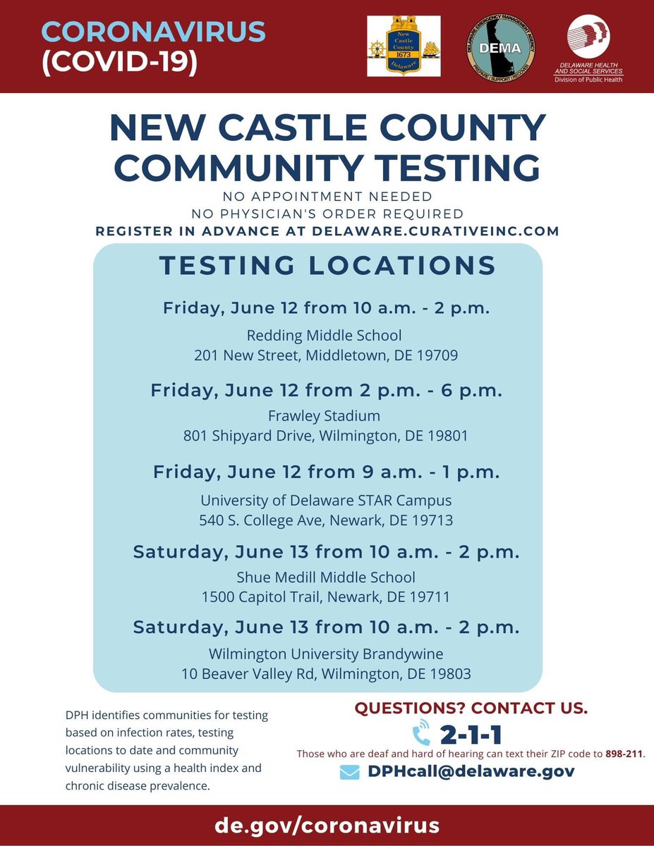 Governor John Carney On Twitter Free Saliva Based Covid 19 Testing Continues This Friday And Saturday In New Castle County This Simple Test Is Available To Delawareans With Or Without Symptoms No Doctor Referral